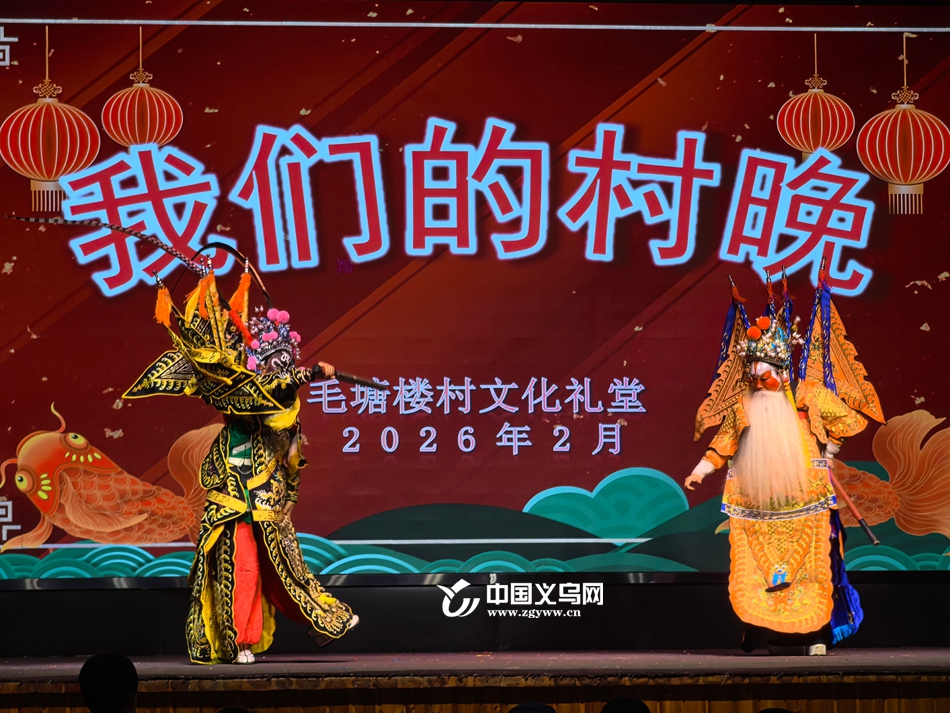 中国义乌网2月14日讯(记者 陈佳琪 编辑 童荟颖)2月13日晚,义乌市上溪镇毛塘楼村文化礼堂人头攒动、暖意融融,2026年“我们的村晚”在此精彩上演。此次村晚老中青齐登台,近两百名村民欢聚一堂,在歌声、掌声、欢笑声中喜迎新春,共话乡情。