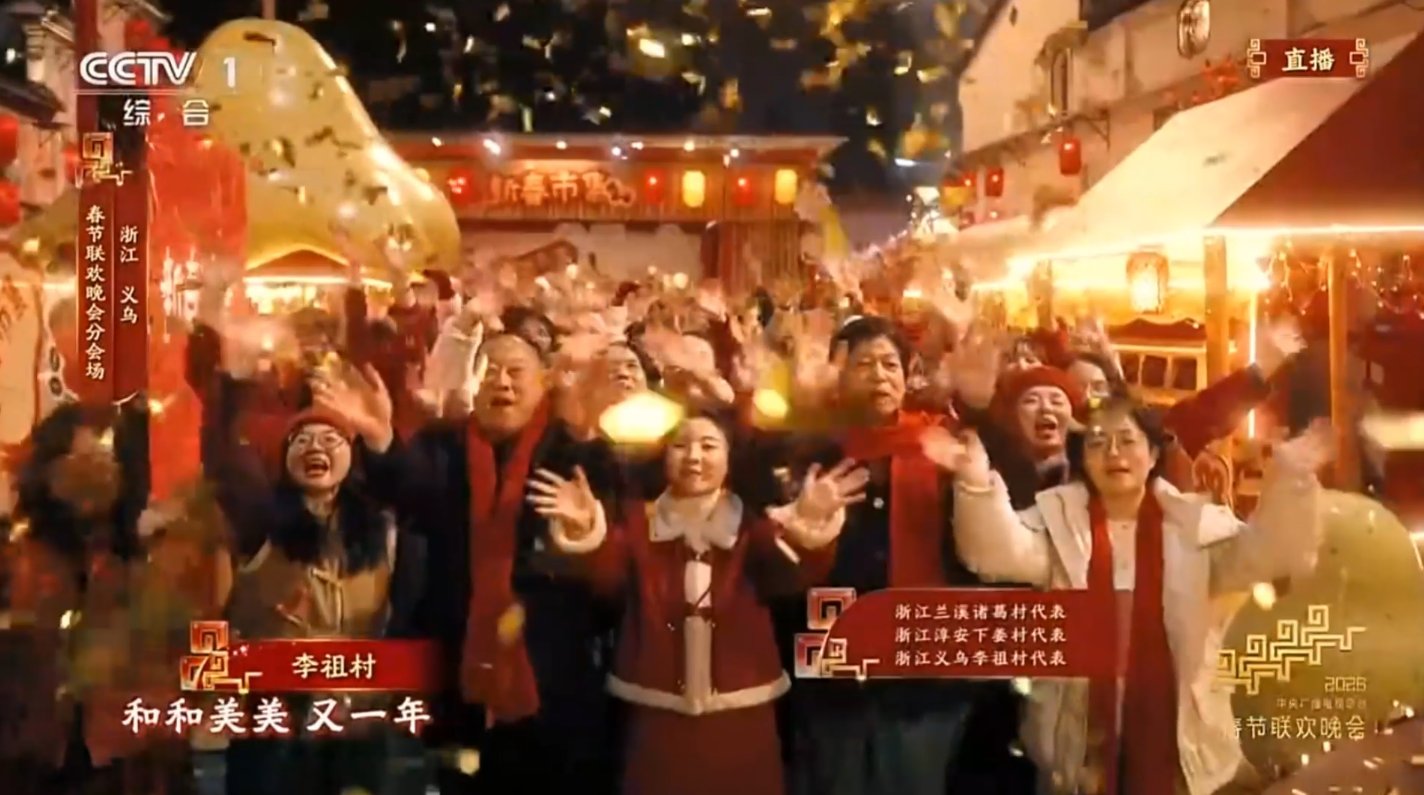 马年春晚的聚光灯下,义乌的千年文脉与当代活力、本土底蕴与全球视野完美交融,佛堂古镇的古今共生、西门老街的创业传承、乡野村落的振兴实践、国际商都的开放包容,共同谱写了“有情有义世界义乌”的时代华章。这座城,既有拨浪鼓里的初心坚守,也有中欧班列的豪迈远方;既有红色信仰的薪火相传,也有乡村振兴的蓬勃生机;既善待每一份乡愁,也拥抱每一种可能。这,就是春晚分会场里的义乌故事,一个关于传承、关于创新、关于奋斗、关于包容的中国故事。