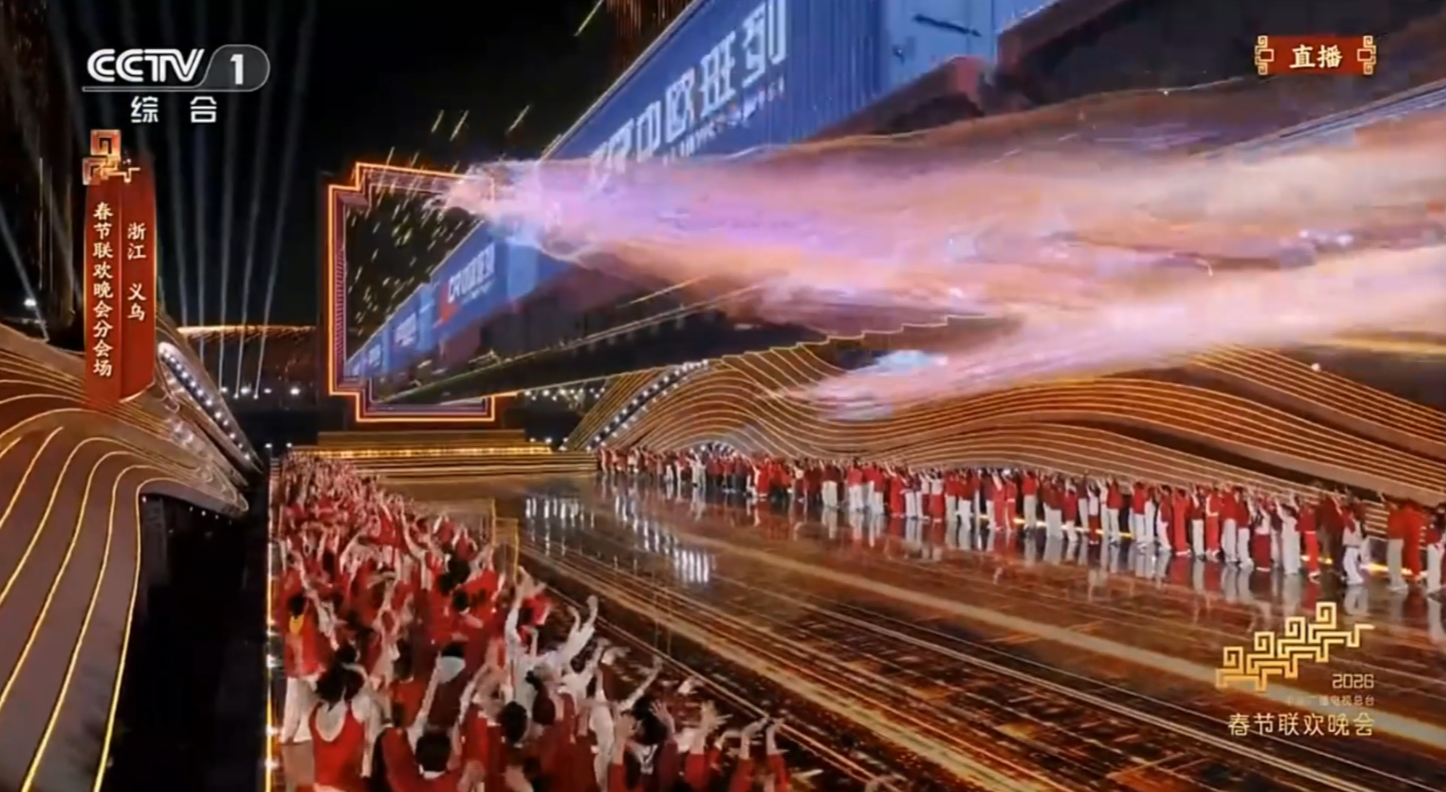 中国义乌网2干17日(记者 蒋守洋 通讯员 潘桂倩 编辑 程雄)马年春晚,在“骐骥驰骋”的吉祥颂声中,总台春晚义乌分会场以时间为轴、以历史为脉,全方位铺展“有情有义、世界义乌”的独特风采。作为“中国看世界、世界看中国”的重要窗口,这座城市在春晚的聚光灯下,生动彰显出“勇立潮头、奋勇争先”的浙江风范与时代气质,让千年商脉与当代活力、本土底蕴与全球视野,在新春佳节里交相辉映。