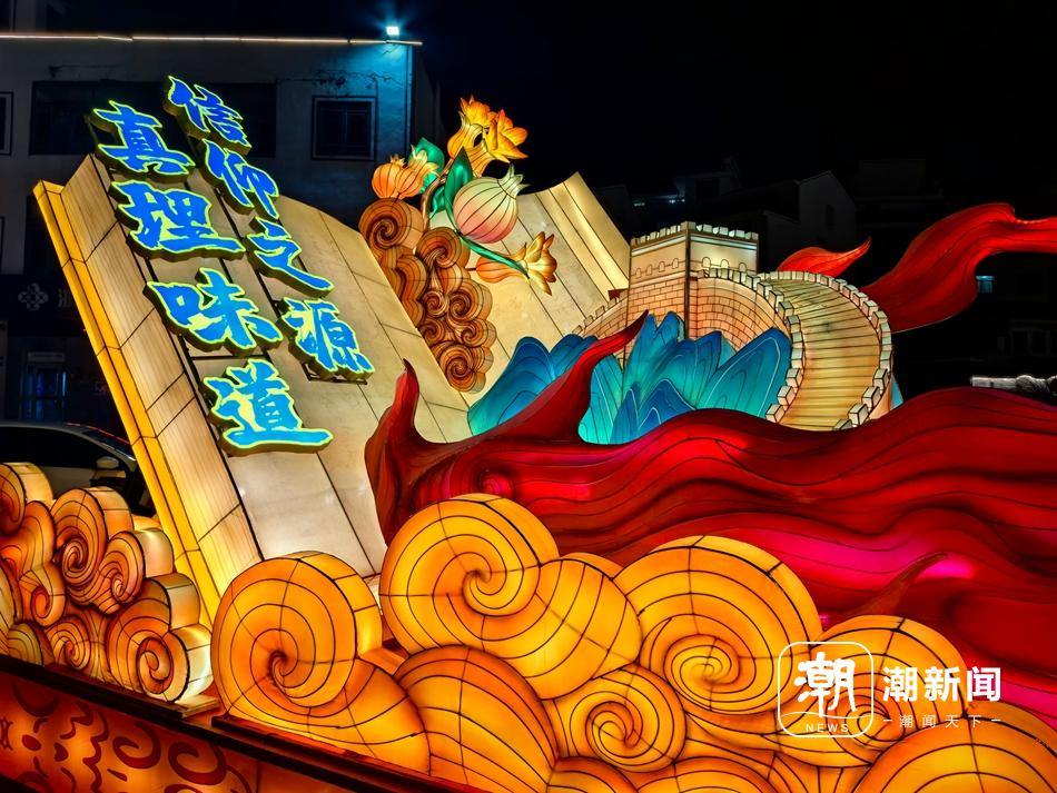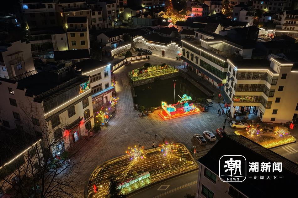 入夜时分,全村照明系统有序点亮,勾勒出古村的别样韵味,其中核心景点的“信仰之灯”主题灯展上,多组定制灯具与艺术装置将“真理的味道”和《共产党宣言》经典金句转化为绚丽的光影画面。据分水塘村青年委员陈卫强介绍,此次新春亮化共为全村更换800余盏红灯笼,在主干道安装近3000盏氛围彩灯,铺设约3万米LED灯带,全方位提升了古村的节日颜值。