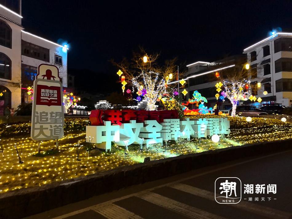 借着春晚东风,分水塘村与李祖村、大陈二村等义乌和美乡村同步完成焕新升级,将红色文化、田园风光与春晚元素深度融合,成为兼具年味与文化味的新春打卡胜地。村内青石板路蜿蜒伸向山腰,陈望道故居内的柴屋静静伫立,案几上的油灯、粽子与红糖,定格着1920年那个改写中国命运的春天。村口那座长12米、宽5米、高4米的巨型主题彩灯,生动还原了陈望道在柴屋翻译经典的历史场景,经城西街道邀请专业团队精心打造,自亮灯以来便成为游客争相打卡合影的“网红地标”。