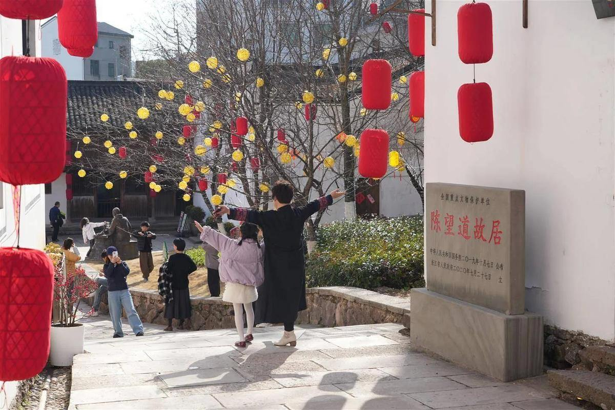 游客在陈望道故居门口拍照留念,与春晚镜头同框 图源:金华新闻网