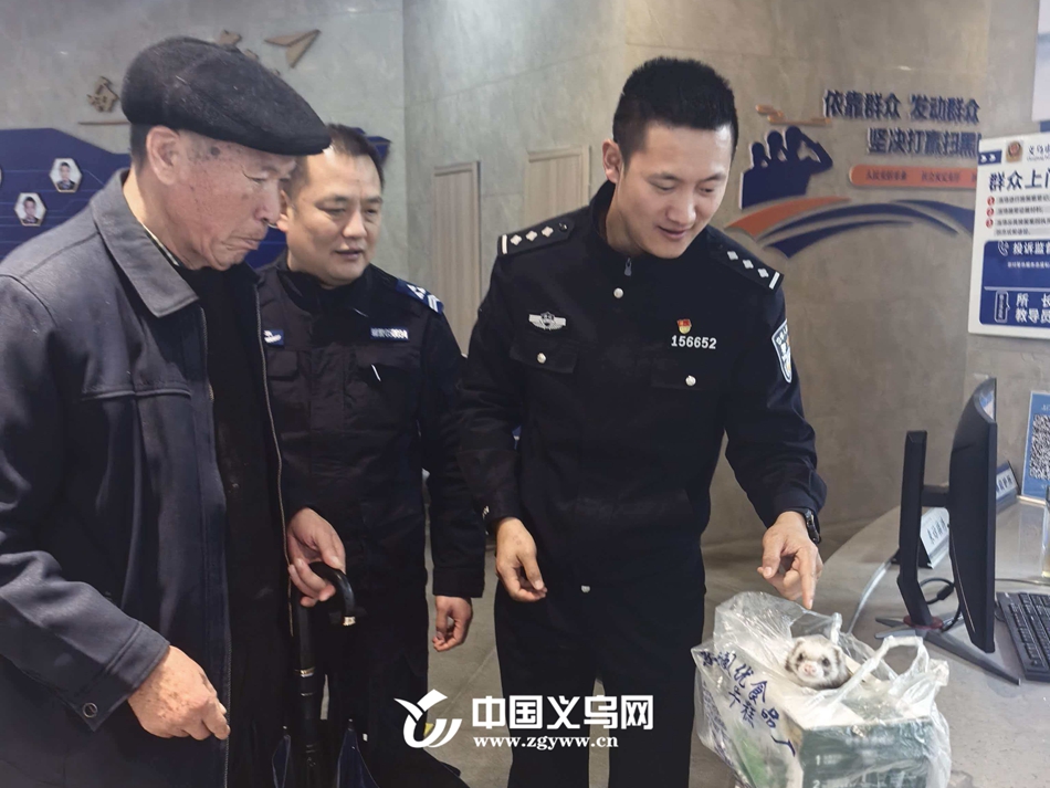 2月26日下午,市民王大爷在义乌市稠江街道后申塘小区发现一只疑似走失的宠物雪貂(安格鲁貂),该动物毛色灰白相间,无明显外伤,状态尚好。出于安全与动物保护考虑,王大爷主动将其送交至稠江派出所,由民警接收并登记备案。目前该动物暂由派出所妥善安置,待核查来源后作进一步处理。