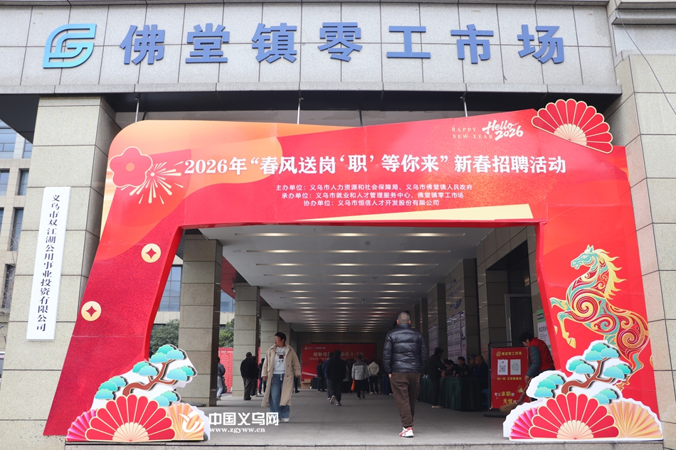中国义乌网2月26日讯(记者 陈佳琪 编辑 童荟颖)2月26日上午,2026年“春风送岗职等你来”佛堂镇新春招聘会在佛堂镇零工市场正式启幕。作为义乌市节后最早举办的就业招聘会,本次活动由义乌市人力资源和社会保障局、义乌市佛堂镇人民政府联合主办,以“政策赋能+岗位对接+技能体验”三位一体设计,搭建企业与求职者精准对接的高效平台,既破解企业“用工难”,又助力复工复产实现一季度“开门红”,也精准满足各类群体就业诉求,为马年佛堂镇产业发展注入新动能。
