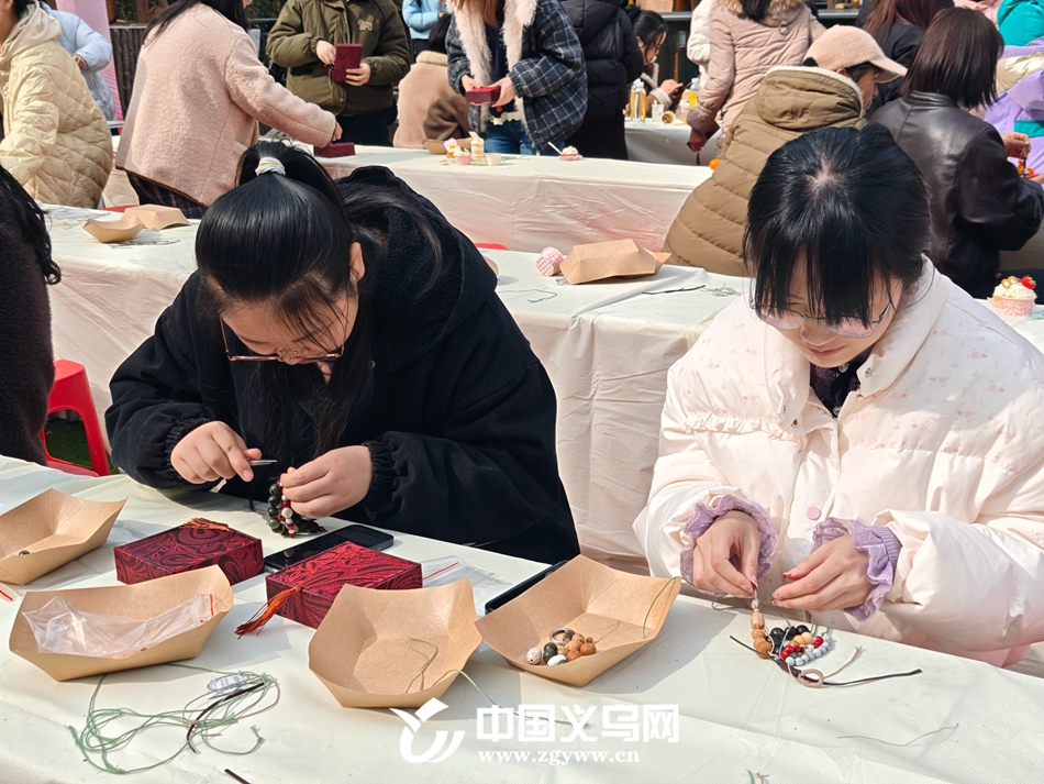 轻松的游戏环节后,活动进入了手作体验阶段。桌上摆放着薏苡、猴头、核桃、绿水晶等十余种天然药石珠材,散发着清雅草本香气。在专业老师的指导下,大家精心挑选搭配,亲手编织了专属的车挂或包挂,将一份健康安宁的祝福编入其中,同时也进一步感受到了传统技艺的魅力。