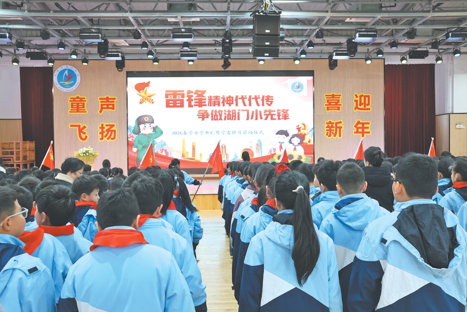 3月5日,湖门小学全体师生在校体育馆内整齐列队,在激昂的出旗曲中举行“雷锋精神代代传”主题月启动仪式。少先队旗手护送队旗入场,全体少先队员肃立敬礼。湖门小学号召全体师生学习雷锋精神,争做时代新人。学校邀请第三届义乌市道德模范程青梅来校分享公益故事,用亲身经历诠释什么是坚持、什么是奉献,为学生们的成长注入鲜活的榜样力量。在接下来的“学雷锋志愿服务月”活动中,湖门小学将引导孩子们从身边小事做起,分年级开展城市服务行动,为建设有情有义的世界义乌贡献力量。