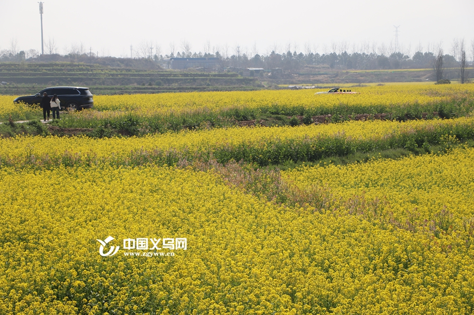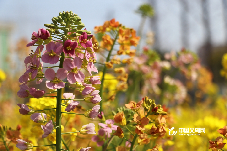 中国义乌网3月10日(记者 陈佳琪 编辑 童荟颖)近日,义乌市上溪镇苦竹塘村300亩七彩油菜花进入最佳观赏期,金黄花海间点缀粉红、橘红、乳白、浅紫等缤纷色彩,吸引义乌及周边县市数千名游客前来赏花游玩、拍照打卡,尽享春日田园风光。