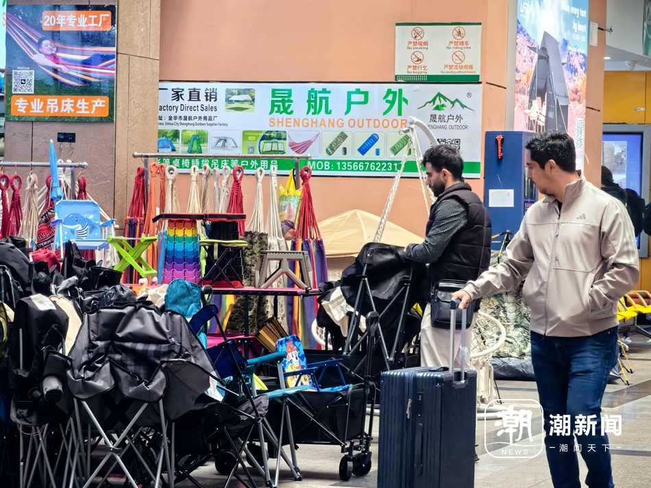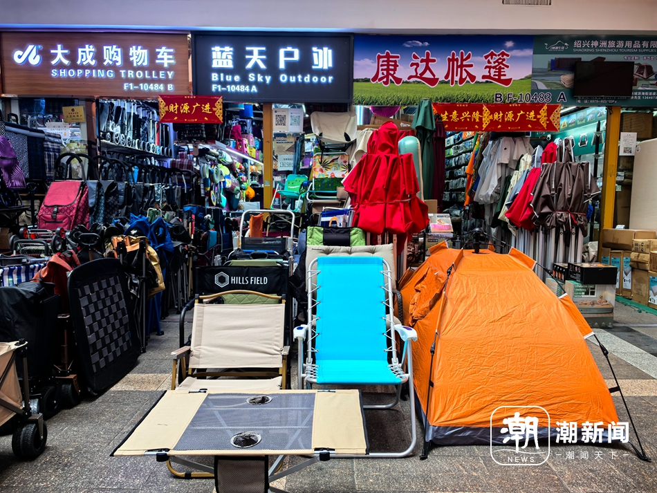 作为深耕户外用品领域四十年的老牌经营户,朱悦来的摊位上帐篷、桌椅、睡袋等产品琳琅满目,其中帐篷和露营椅凭借实用的性能,常年稳居销量榜首。“我们的外贸占比接近80%,主要出口东南亚、北非、中东等地区。虽然近期部分国家运费有所上涨,但海外市场对户外用品的需求依旧旺盛,采购商下单热情不减。”朱悦来说。