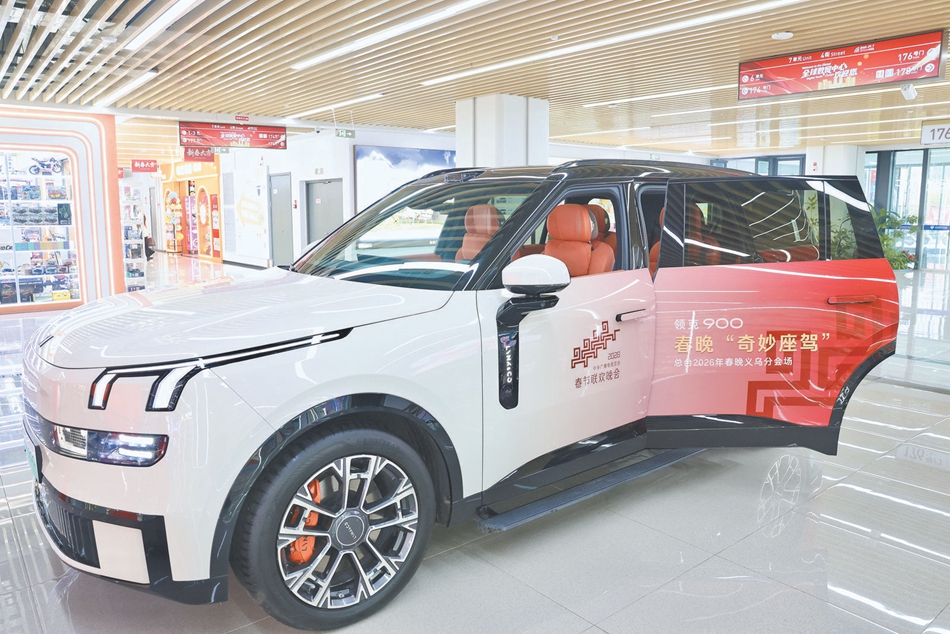 连日来,走进义乌全球数贸中心南大厅,一辆车身印有“春晚‘奇妙座驾’”字样的领克900汽车格外吸睛。这款在总台2026年春晚义乌分会场舞台上惊艳全球的车型,首次落地义乌市场展出推广,备受关注。