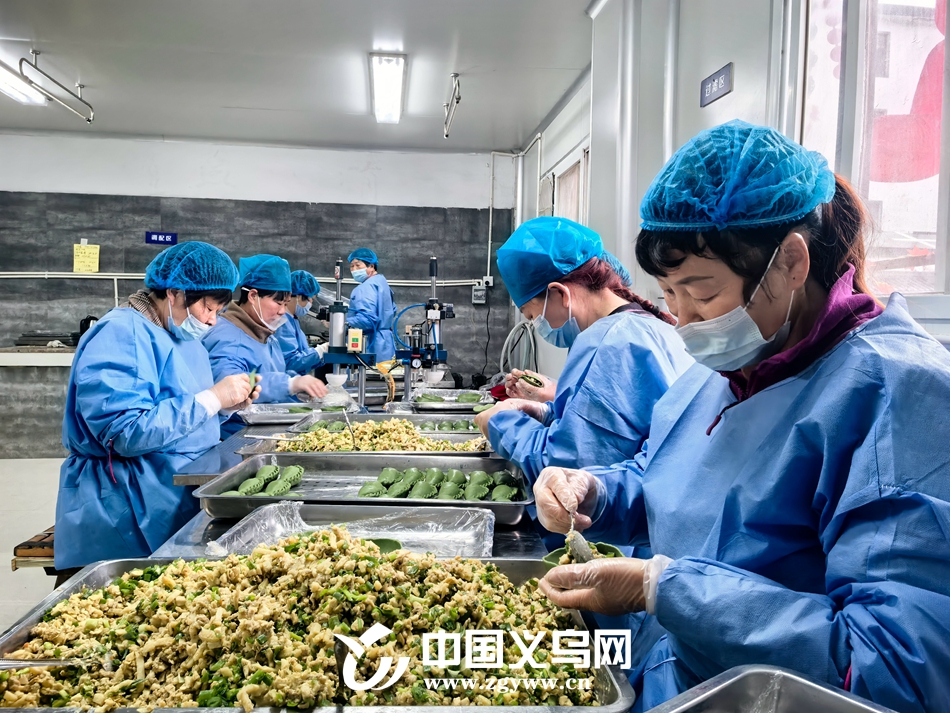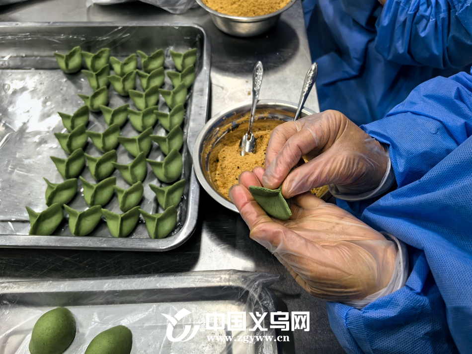 据了解,宦塘村地处义乌最北角,坐落于道人山脚下,四面环山、物产丰饶,过去不少留守妇女身怀传统点心制作手艺却缺少增收渠道。蒋伟萍便牵头把分散在各家灶台的老手艺聚拢起来,按照“标准化车间、流水线生产、网络化运营”模式打造共富工坊,吸纳周边村社30余名家庭妇女就近就业,让村嫂们实现顾家、挣钱两不误。“以前在家没事干,现在来工坊做清明粿,不仅能赚钱,还能和姐妹们一起聊天,日子充实多了。”其中一位村嫂笑着说道。