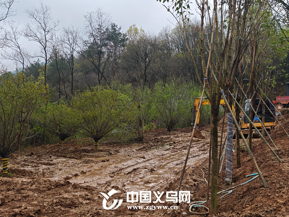 中国义乌网3月27日讯(记者 陈珊珊 编辑 童晓)3月27日,在义乌市后宅街道方塘村义礼田园综合体项目现场,太空舱民宿已初具雏形,工人们正忙着进行红梅和桂花树的栽种。不远处山坡上,土地清表工作也在有序推进,为后续开发奠定基础。