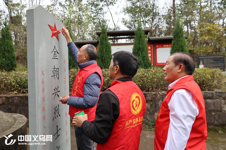 3月27日,苏溪镇退役军人服务站组织义乌市建设美丽义乌促进会苏溪分会23名志愿者,穿着红马甲,带着鲜花、红油漆、清洁工具等前往3座烈士陵园做祭扫清洁描红公益保洁活动。