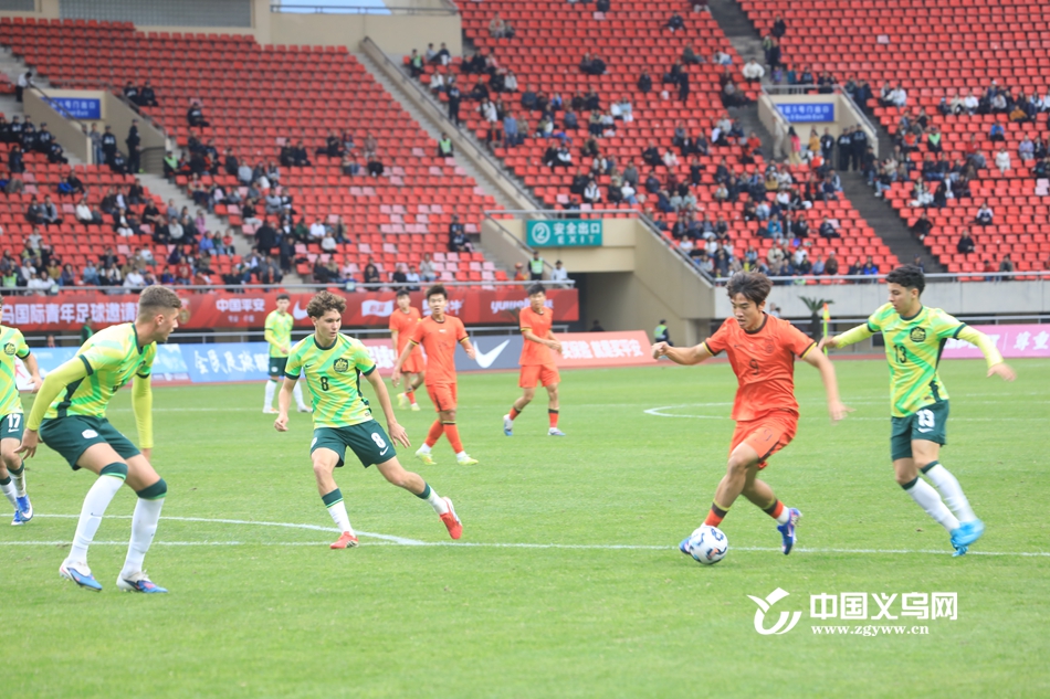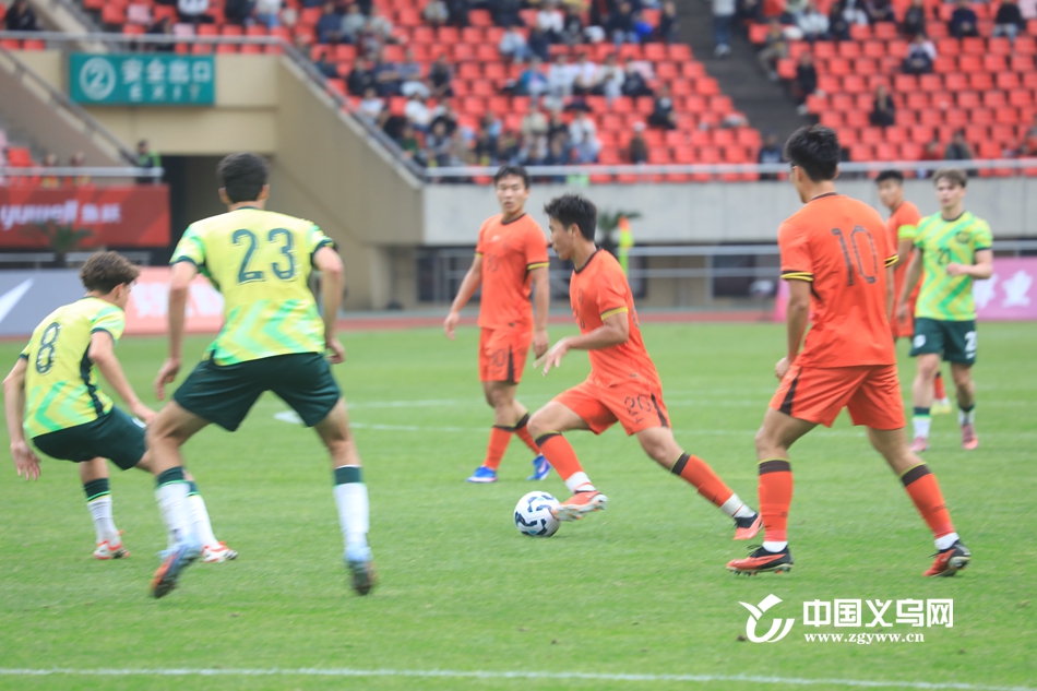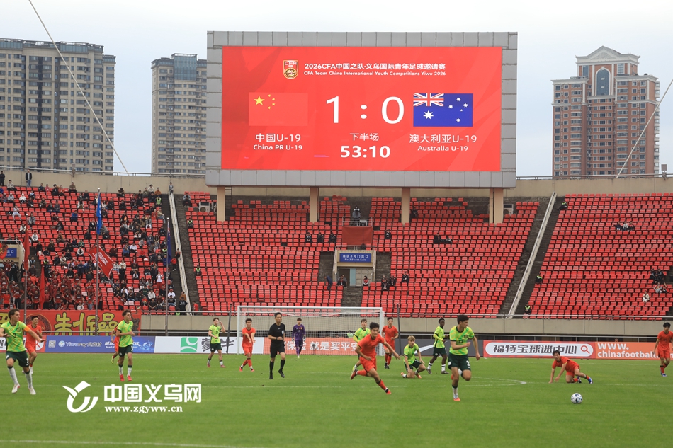 中国义乌网3月28日讯 (记者 车志蒙 编辑 刘蓉) 3月28日下午3时整,2026年CFA中国之队·义乌国际青年足球邀请赛在义乌市梅湖体育中心体育场正式打响。中国男足U19坐镇主场迎战澳大利亚U19,双方展开首回合激烈角逐。