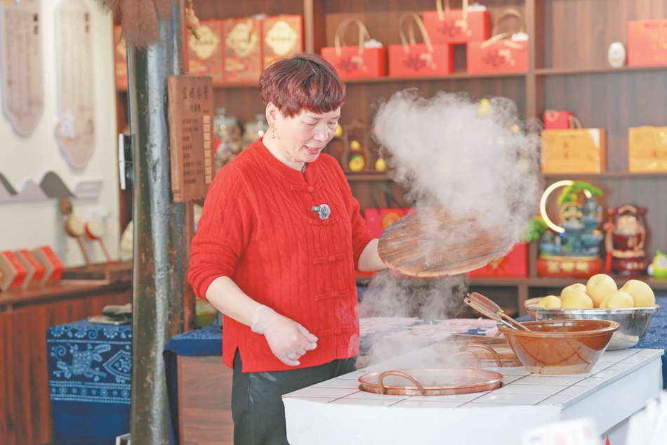 在她看来,古法熬制的梨膏,才有真正的“灵魂”。“蒸汽熬的梨膏色泽清淡、口感寡淡,而土灶慢熬的梨膏则醇厚自然,带着梨香和淡淡的焦糖味,回味悠长。”2025年,梨膏糖制作技艺成功入选第九批金华市非物质文化遗产代表性项目名录,而她也曾登上央视《非遗中国说》节目的舞台,为这份醇厚的义乌老味道倾情代言。