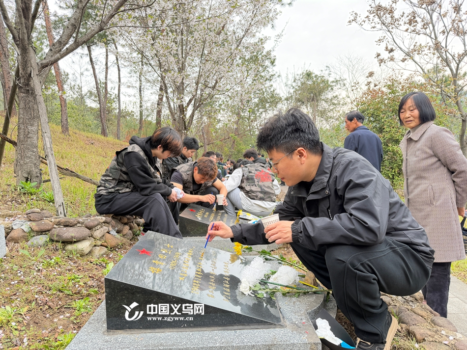 现场,义乌工商职业技术学院的同学们有序开展墓碑擦拭、描金活动。该院学工部、人武部副部长吴玲娜介绍,此次学院专门组织“清明祭英烈,重走长征路”徒步思政实践教育活动,共有50余名师生参与其中。旨在通过这堂“行走的国防思政课”,带领同学们用脚步丈量长征精神,以实际行动致敬英雄。她表示,活动专设喀喇昆仑精神思政微课,由退役大学生士兵主讲,同时讲述该校英雄校友骆超强烈士的事迹,并开展“铁血点名”特殊接力环节。希望借此让同学们铭记英烈、传承红色精神,勤奋学习、走好新时代长征路。