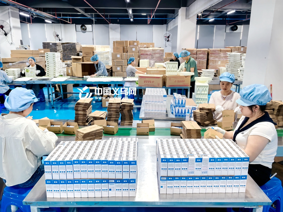 据悉,该公司2018年落户义乌市佛堂镇,2022年正式投产运营,依托当地便捷的电商物流、优良的营商环境与人才支撑,实现跨越式发展。“公司以电商业务为主,佛堂‘三通一达’物流体系完善,快递时效稳定高效,我们持续把核心订单向义乌集聚。”宋鹏驰感慨道,企业在佛堂发展至今已是第五年,基地业务占比从2022年的20%攀升至如今的60%,“一路高歌猛进,离不开佛堂政府的优质服务和完善物流体系的有力支撑。”目前,企业线上线下均有销售,产品覆盖全国主流电商平台与大型商超,深受消费者喜爱。