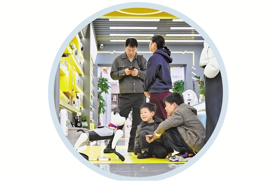 小朋友对市场内的机器狗产品情有独钟。通讯员吴峰宇摄