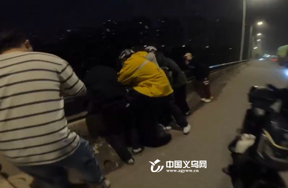 事情发生在15日凌晨义乌廿三里街道商江花园门口大桥上。何泽阳回忆,当晚他刚结束兼职,从廿三里街道骑车返回江东街道石塔头村的住处,途经大桥时,远远就看到一群人围在桥边,气氛异常紧张。