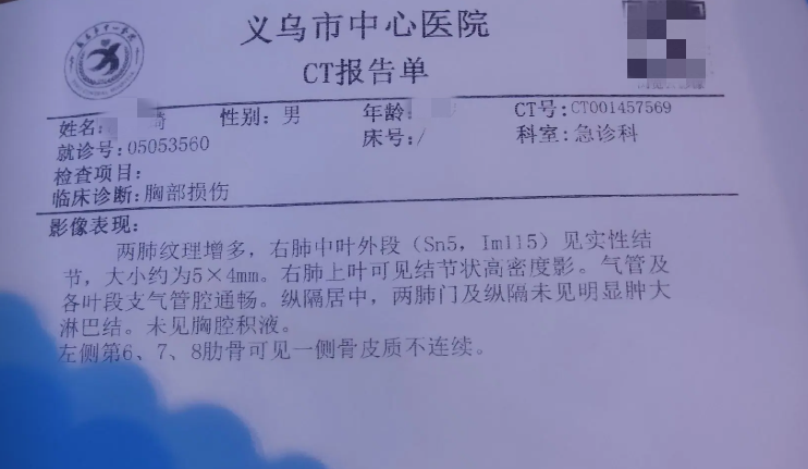 直至次日,美团平台得知此事后,主动联系凌宇琦,并反复劝说他前往医院检查。经诊断,凌宇琦右侧第6、7、8根肋骨断裂。目前,他的全部检查治疗费用已由美团平台全额报销,伤情正逐步恢复。