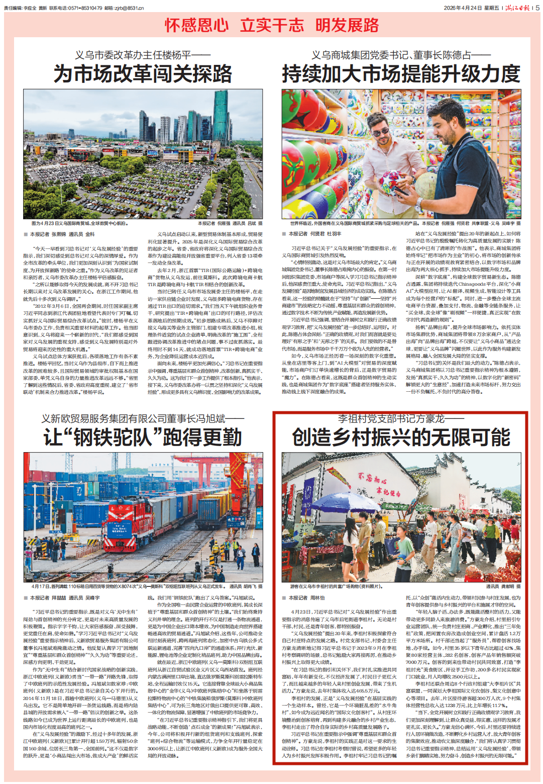 4月23日,习近平总书记对“义乌发展经验”作出重要指示的消息传遍了义乌市后宅街道李祖村。无论是村干部、村民,还是青年创客,都特别振奋。