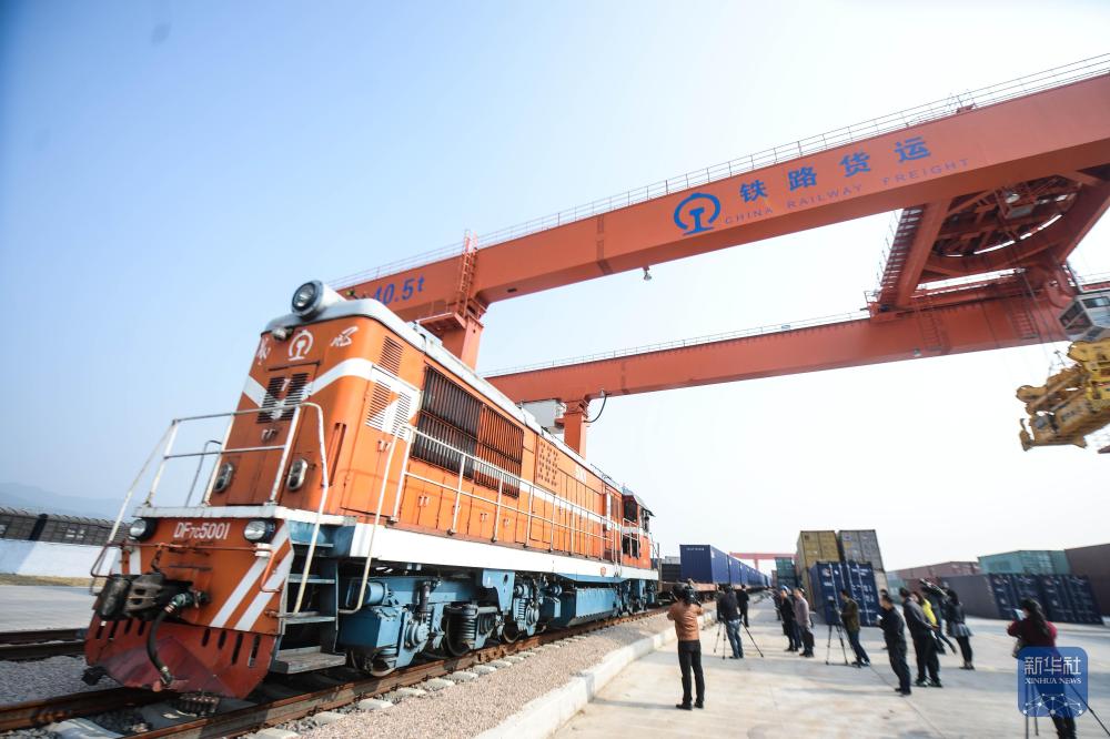 2014年11月18日,首趟“义新欧”国际货运班列即将从义乌货运站出发。新华社记者徐昱摄