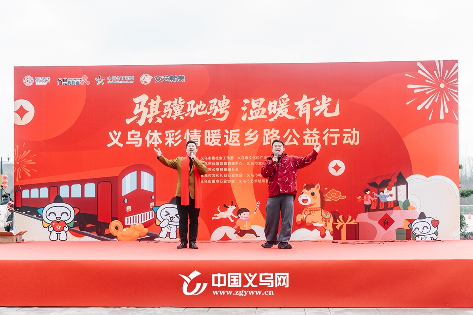 中国义乌网2月2日讯(记者 龚书弘 编辑 童晓)2月2日,春运大幕拉开。在义乌火车站,返乡人流如织,行李拖轮声、广播提示声、家人通话声交织成独特的春运序曲。在步履匆匆的人潮中,“有情有义世界义乌”的标语在火车站广场格外醒目,一场洋溢着墨香与欢笑的活动——由义乌市委社工部、义乌市文广旅体局主办,市体彩中心、市文化馆举办的“情暖返乡路”公益行动温暖启幕。